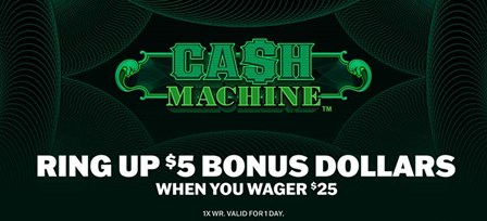 Bet $25 on Cash Machine™ and receive $5 Bonus Dollars to keep the reels moving!